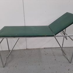 - White leather look beauty therapist chair - can be folded down to be a massage table or general purpose treatment chair - Arms come off