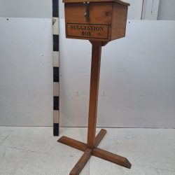 Grey topped table with black, foldable metal legs. Allows for flat storage.