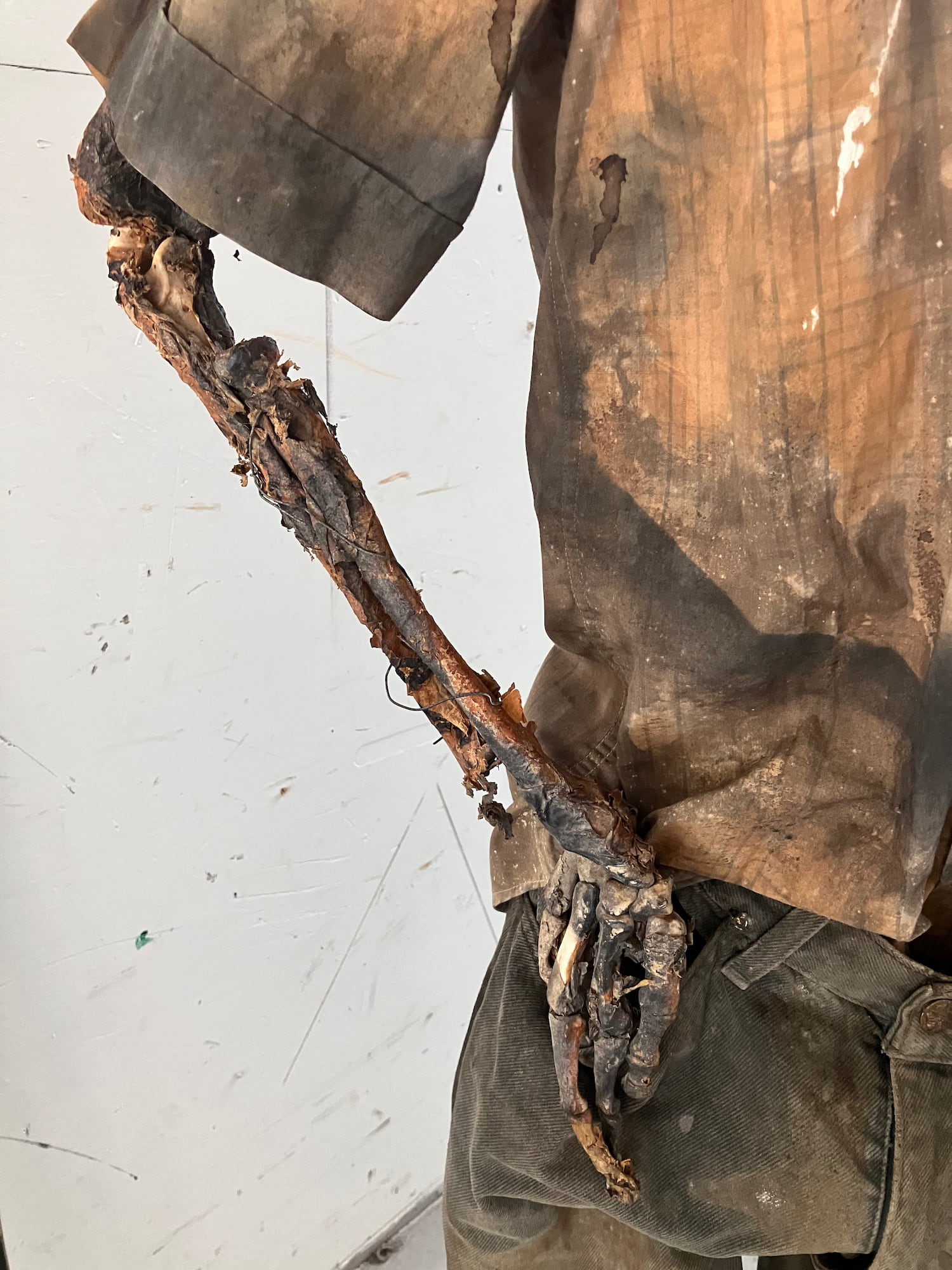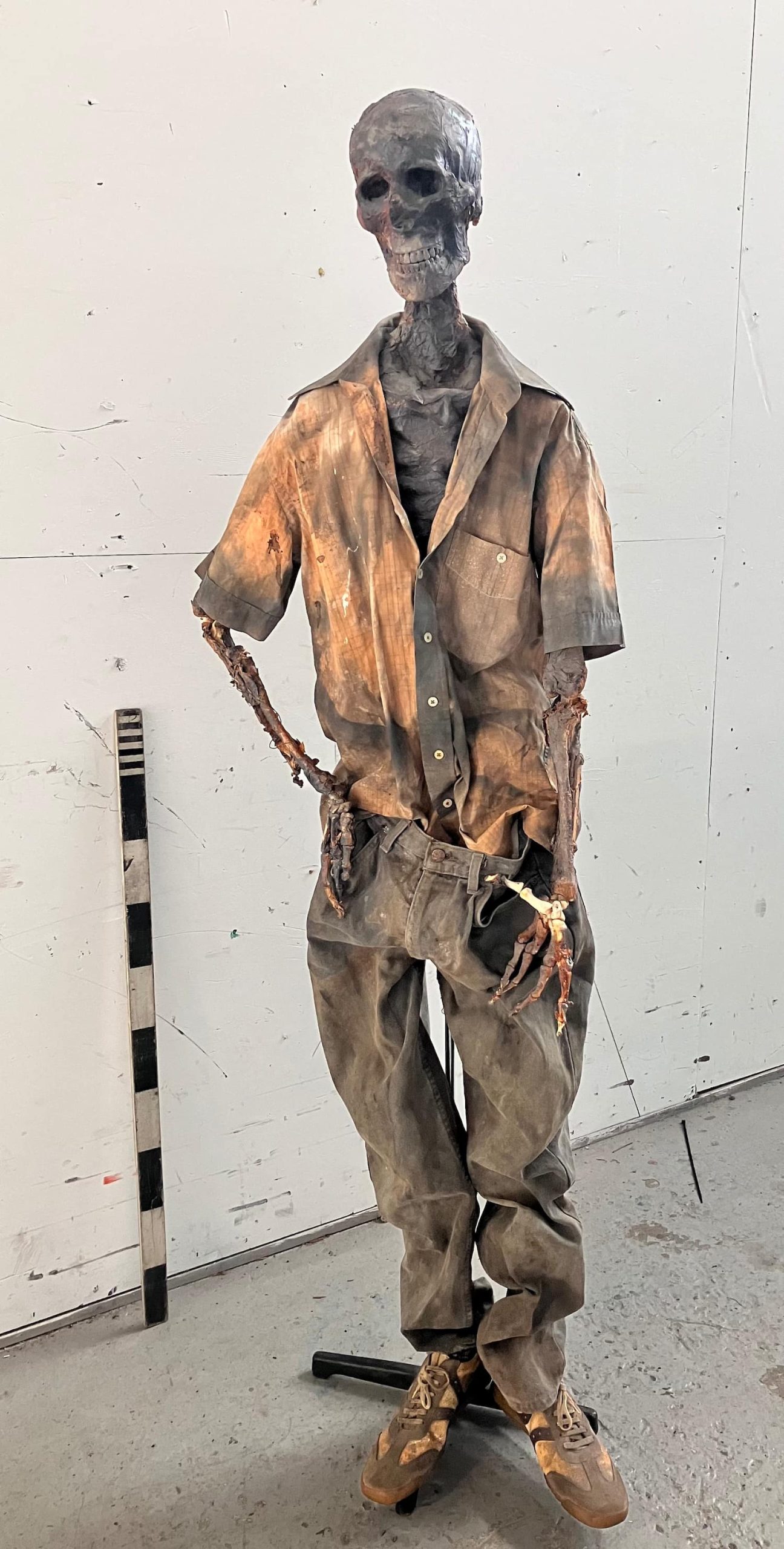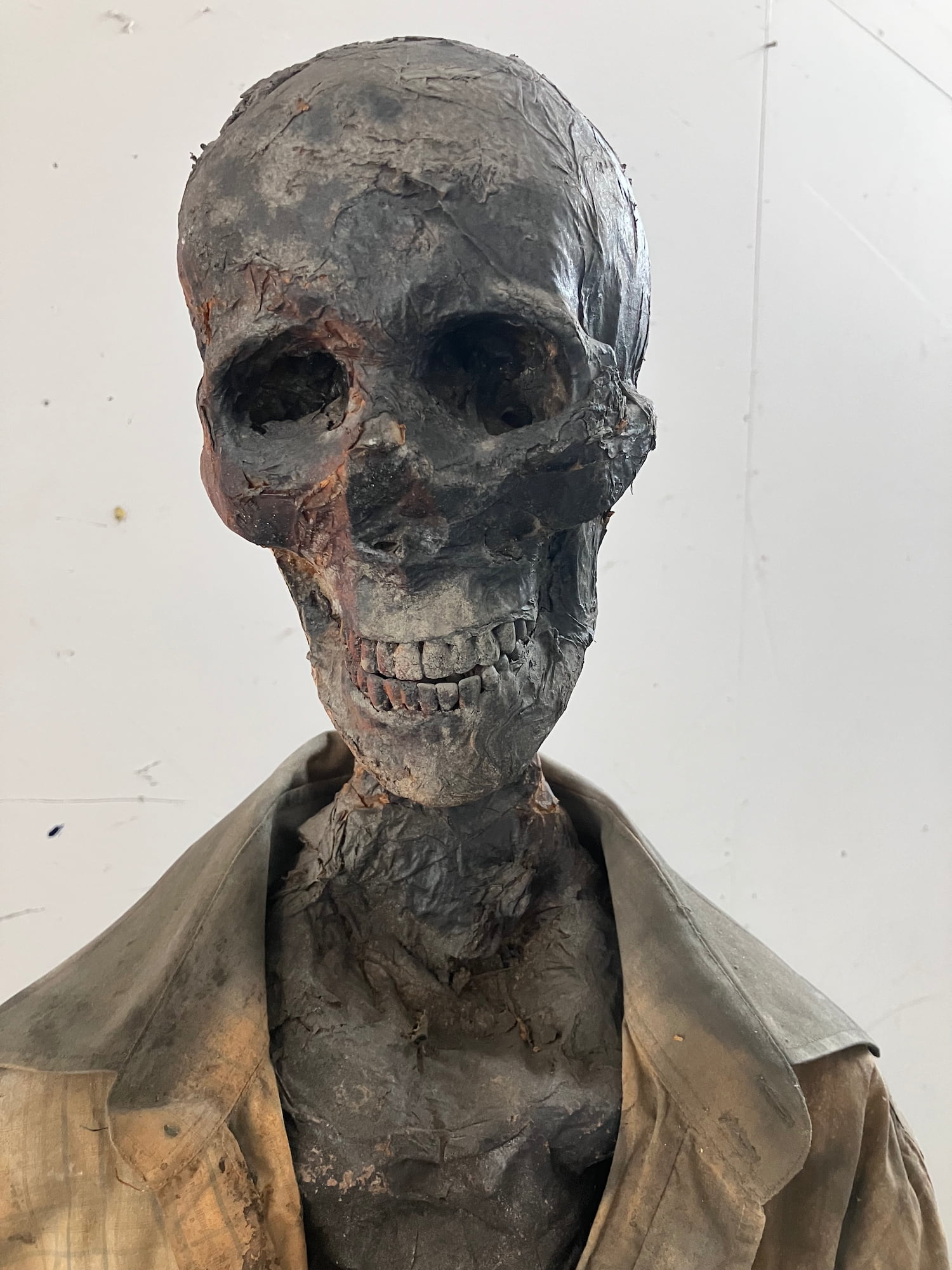 Life size model semi burned human corpse